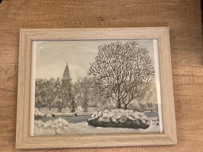 Peisajul de iarna pictat de Andi (“Mosul”), imi va infrumuseta masa de birou si imi va transmite emotia si bucuria acestui moment.