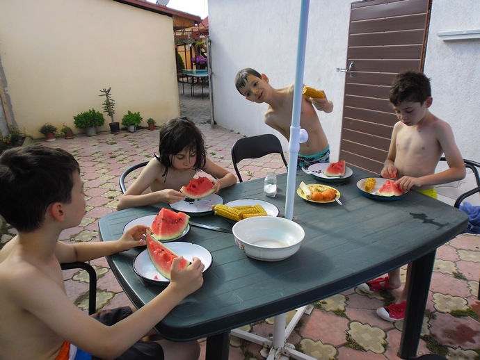 In prima parte a vacantei copiii isi petrec la bunici cateva zile, impreuna cu verisorii.