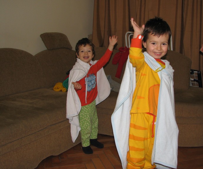 Mama: Sunt cea mai fericita mamica din lume, sa am doi copii minunati ca voi. Fiecare dintre voi este deosebit pentru mine. Tu esti puiutul meu si nu mai exista in lume un alt copil ca tine, esti unic si te iubesc infinit de mult ! La fel si fratele tau, e unic si il iubesc infinit de mult !