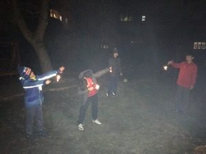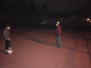 Fotbal pe nocturna in parc (mama pe post de portar):